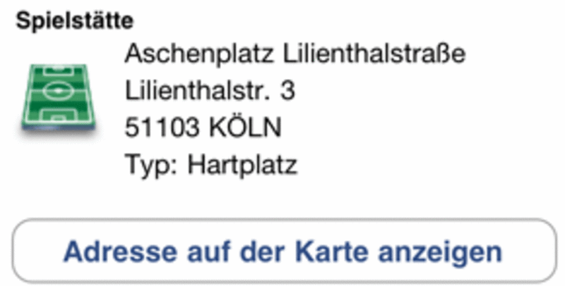 Per Klick auf den Button „Adresse auf der Karte anzeigen“, wird die hinterlegte Adresse der Spielstätte auf einer Karte angezeigt.