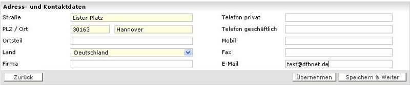 Ausnahmen: Handelt es sich bei der Kennung um eine Vereinskennung, oder ist bei der Person die Adresse als offizielle Vereinsadresse hinterlegt, kann die Adresse nicht bearbeitet werden.