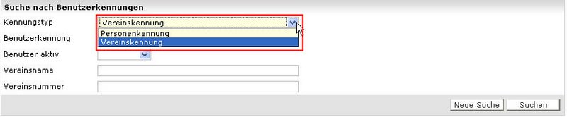 Sie können entweder nach Personen oder Vereinen suchen. Nach welchem Typ gesucht werden soll, wird über den Kennungstyp festgelegt.
