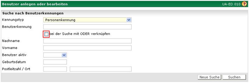 Bevor Sie einen neuen Benutzer anlegen bzw. einen vorhandenen Benutzer bearbeiten können, müssen Sie zunächst nach dem Benutzer suchen, um etwaige Doppelerfassungen zu vermeiden.