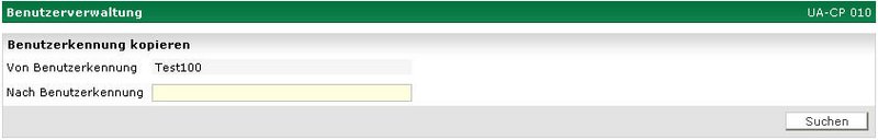 Ferner steht die Zielkennung zur weiteren Bearbeitung zur Verfügung. Tragen Sie unter Benutzerkennung kopieren eine weitere Zielkennung ein und führen die Aktion „Suchen“ fort, beginnt der Vorgang von vorne.