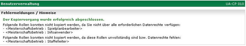 Rollen, die nicht vollständig administriert sind, werden nicht kopiert.