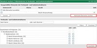 Klickt man das Icon „Hinzufügen“, gelangt man auf einen Screen, in dem die Strukturelemente vorgeblendet werden, für die man berechtigt ist. Die Auswahl eines Strukturelements erfolgt analog zu der Zuweisung der Datenrechte. Hinter den angezeigten Gebieten stehen je nach Applikation folgende Abkürzungen: