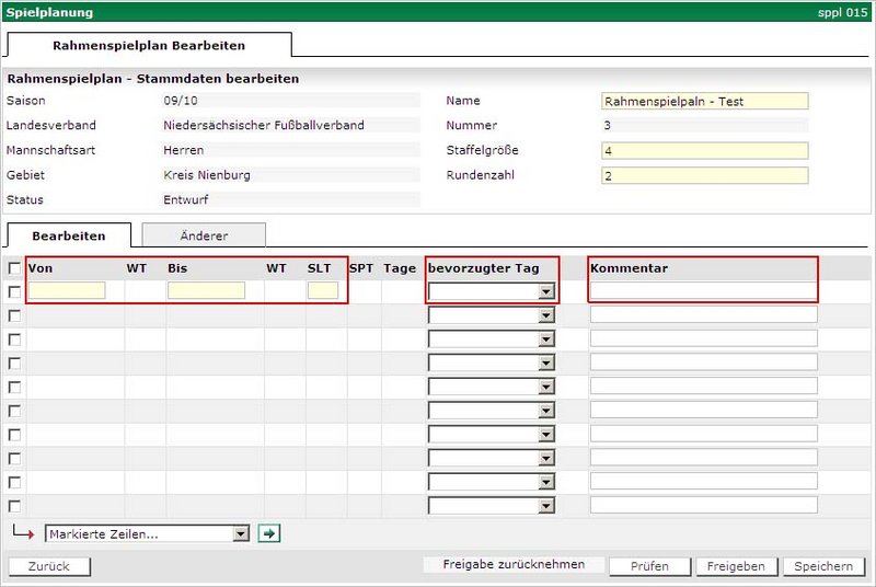 Rahmenspielplan bearbeiten
