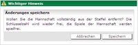 Haben Sie den Button Speichern gewählt, erscheint eine Sicherheitsabfrage. (siehe Screen Sicherheitsabfrage 2)