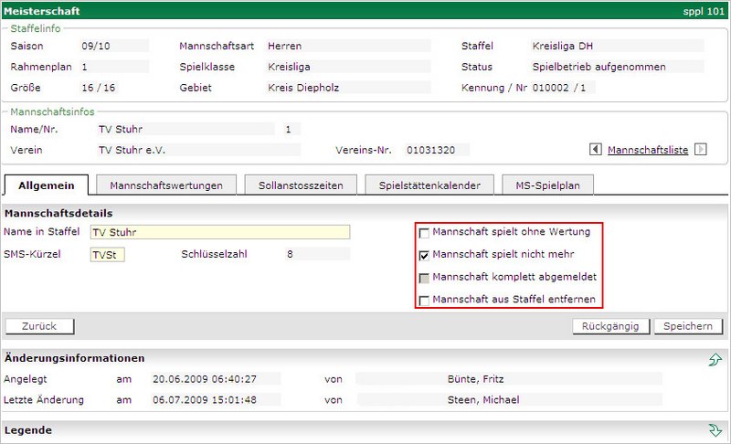 Unterscheidung „Mannschaft spielt nicht mehr“ und „Mannschaft aus Staffel entfernen“