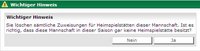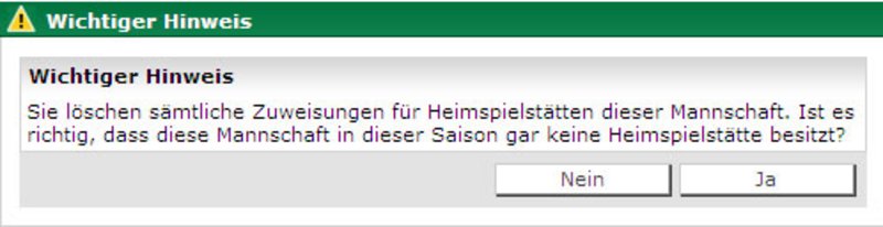 Sie können auch alle Zuordnungen entfernen, aber da es unwahrscheinlich ist, dass eine Mannschaft gar keine Heimspiele besitzt, erscheint zunächst eine Sicherheitsabfrage (siehe Screen "Sicherheitsabfrage")