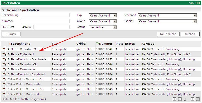 Die Funktion „… Spielstätten in Spielen ersetzen“ wirkt sich nur auf Meisterschaftsspiele aus, allerdings auch auf Meisterschaftsspiele in anderen Staffeln, wenn Sie das Verlegerecht in diesen Staffeln besitzen. Spiele mit Ergebnis werden hierbei nicht mehr verändert.