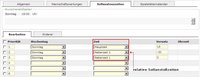 Dieses Feld steht in Abhängigkeit mit der Auswahl einer relativen Anstoßzeit in der Spalte „Zeit“ und stellt eine Abweichung zur ausgewählten relativen Anstoßzeit in Minuten dar. Als Versatz kann sowohl eine -Zeit in Minuten als auch eine +Zeit in Minuten erfasst werden.