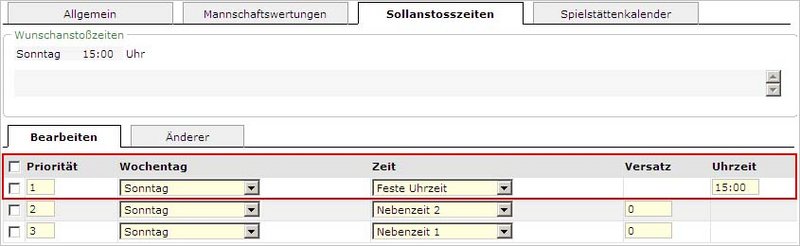Durch die Priorität wird festgelegt, in welcher Reihenfolge die vorhandenen Sollanstoßzeiten beim Generieren des Spielplans geprüft und wenn möglich benutzt werden sollen.
