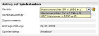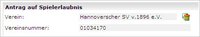 Die Beantragung eines Online-Antrags auf Erstausstellung für einen Spieler ist nur möglich, wenn der Spieler bisher kein Verbandsspielrecht besessen hat. (siehe Screen Erstausstellung)