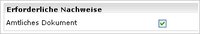 Wenn Ihre zuständige Mitgliedsorganisation den Nachweis weiterer Unterlagen fordert, wird der Bereich "Erforderliche Nachweise" in der Antragsmaske bereitgestellt. In den Online-Anträgen handelt es sich bei den Nachweisen um Pflichtfelder.