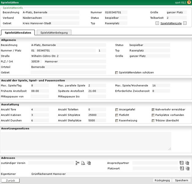 Spielstättendaten