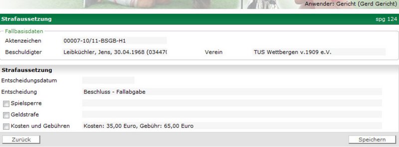 Erst nach der Speicherung werden die Informationen zur Entscheidung und zum Strafmaß der Vorinstanz angezeigt.
