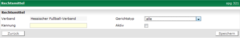 Da in der Sportgerichtsbarkeit wie in der normalen Gerichtsbarkeit Rechtsmittel eingelegt werden können, wird dieser Prozess in der Anwendung abgebildet. Da es in den Rechts- und Verfahrensordnungen der Verbände abweichende Bezeichnungen für die entsprechenden Rechtsmittel gibt, bezeichnen wir diese als „Rechtsmittel“. Es wird in der Anwendung im Bereich der Konfiguration die Möglichkeit geboten, die entsprechenden gültigen Rechtsmittel verbandsspezifisch anzulegen. Die entsprechende Auswahl der Rechtsmittel steht dann im Bereich der Fall übernehme zur Auswahl.