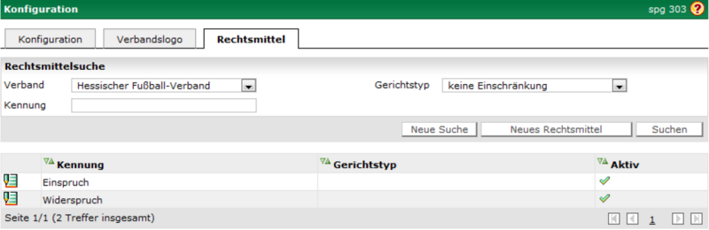 Konfiguration Rechtsmittel